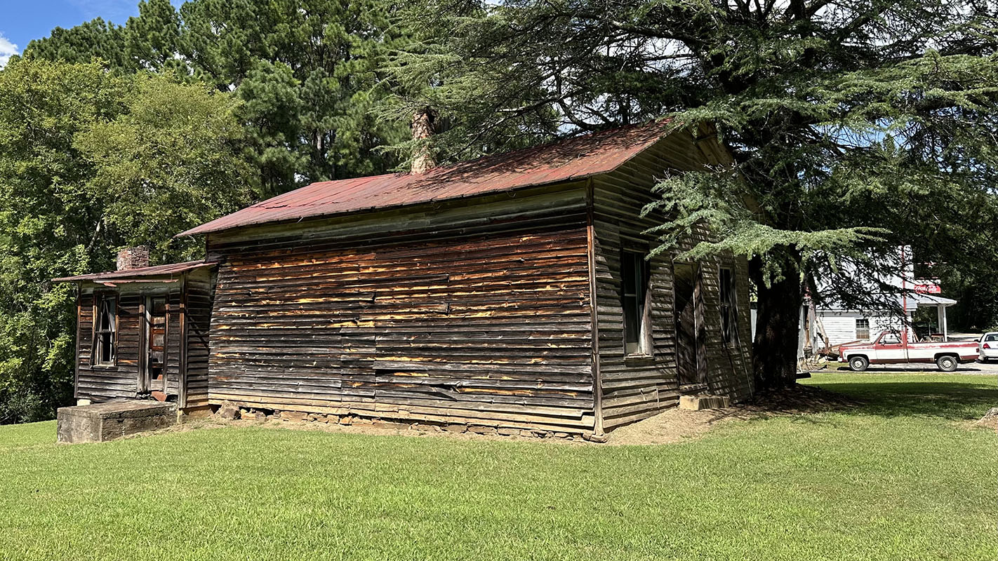 A few dozen yards to the west of the store is an eye-catching old building with sun-scorched walls, a red metal roof, an interesting diagonal-plank double door, and a shade tree looming over the roof like an umbrella. This is thought to have been the office of Dr. John W. Price, who served the community during the 1880s and 1890s. It probably had several uses over time, probably as a store as well. As of 1950, it was used as a residence by Ferd Brown who worked as a trucker at that time. Next to Ferd lived a blacksmith named Henry Guthrie from Halifax County and his wife Hallie who was listed as a “retail salesladie.” Of further note, a sawmiller named Thomas F. Cooper lived next to the Guthries and had their operations nearby.